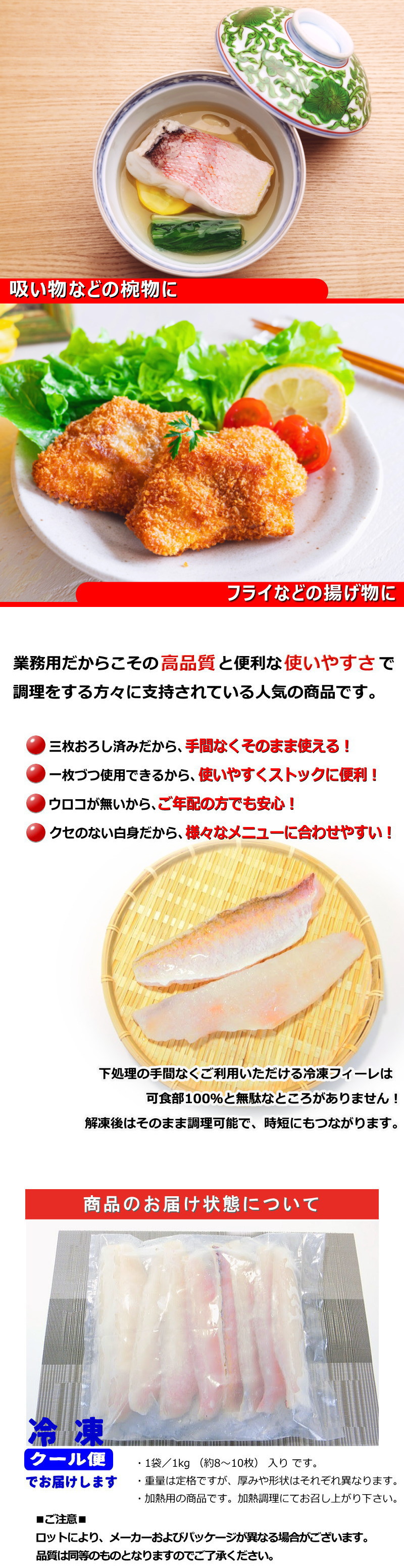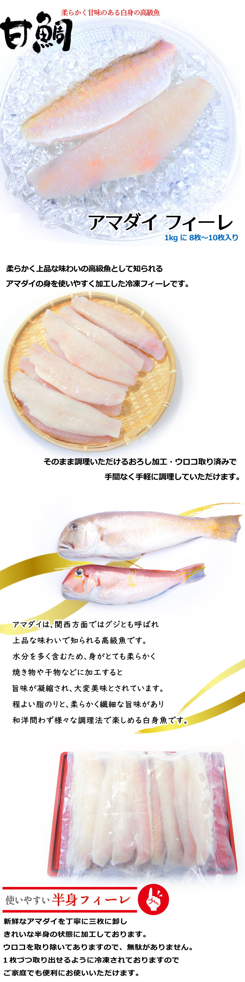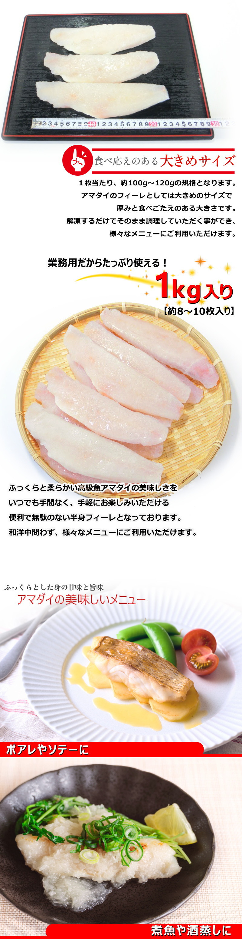 高級食材として知られるアマダイの業務用フィーレです。