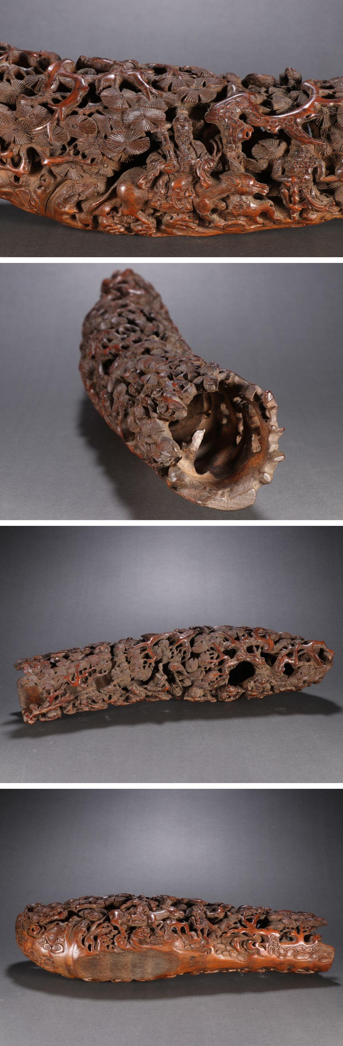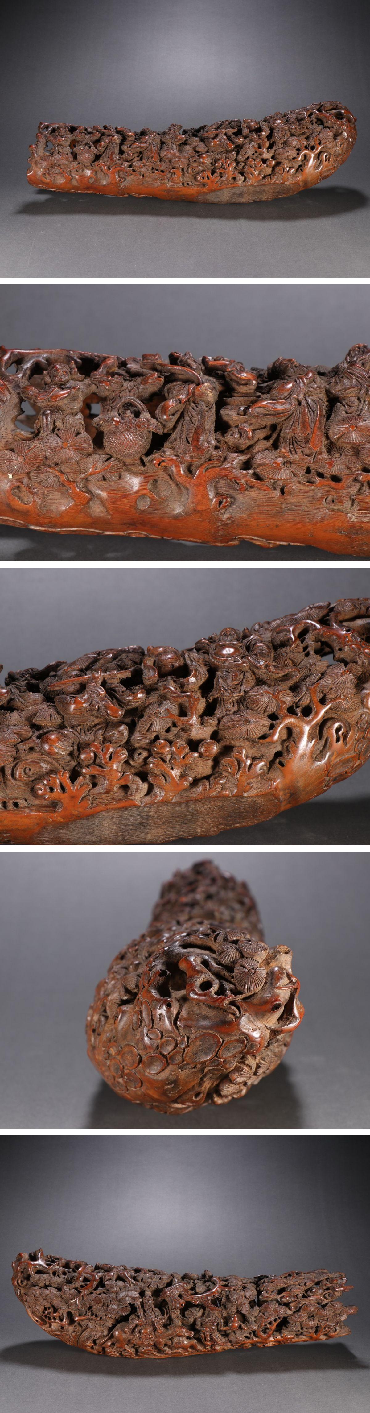 【清】某有名オークション購入 清時代 竹彫り 八仙物語紋案頭置物 材質保証 当時物保証古置物 古擺件 古美術 時代コレクション7L9-BXS12 收藏