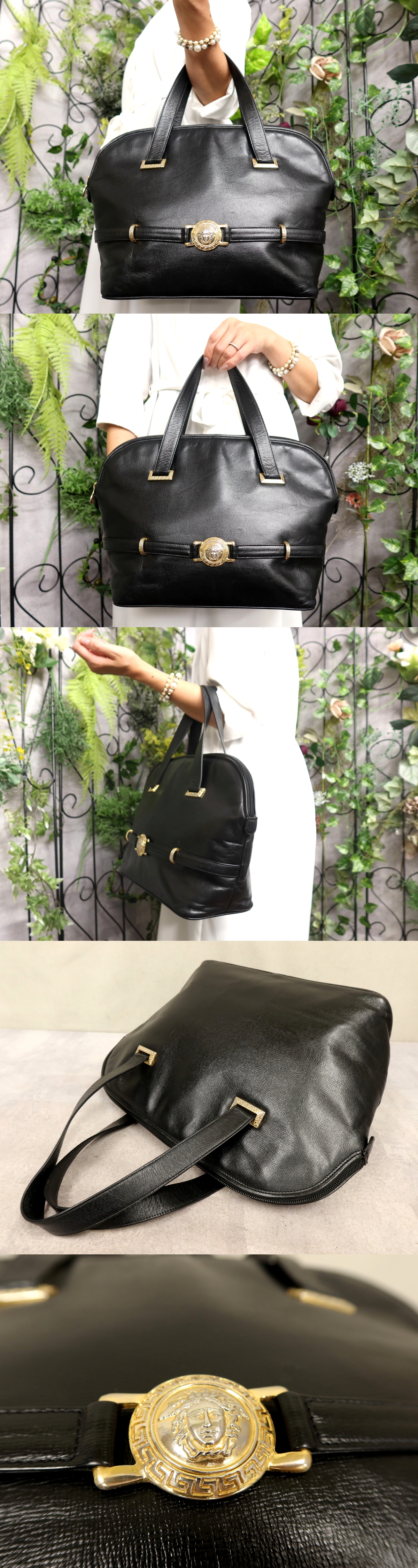 超美品●GIANNI VERSACE ジャンニ・ヴェルサーチ●メデューサ●カーフ レザー 本革●ハンド バッグ●黒●G金具●ヴィンテージ●B5●Js61292 收藏