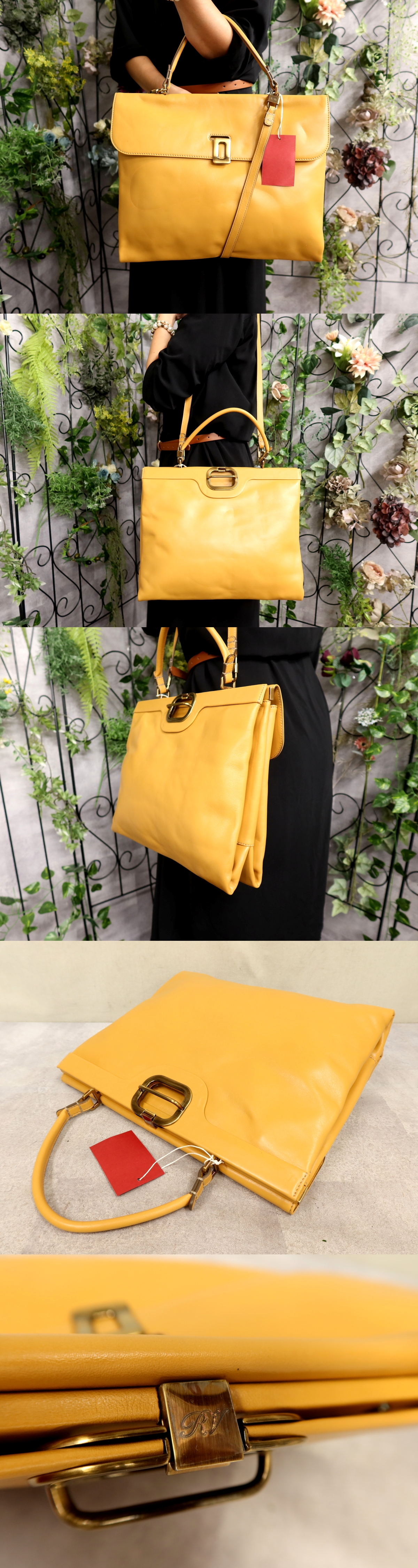 ●超美品●Roger Vivier ロジェヴィヴィエ●カーフ レザー 本革●2way トート バッグ●ゴールデンイエロー●ゴールド金具●A4●Js61373 收藏