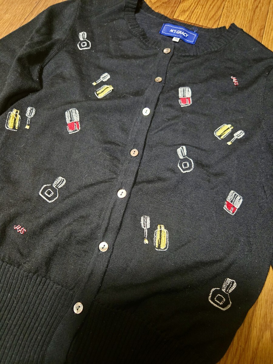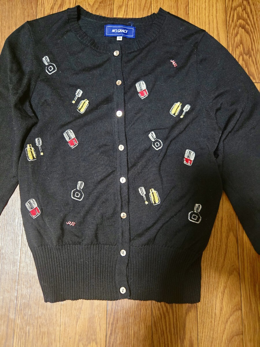 エムズグレイシー カーディガン マニキュア柄 長袖ニット セーター 黒 赤 黄 ウール ロゴv2way ガーリー 大人可愛い セレブ カタログ掲載 收藏