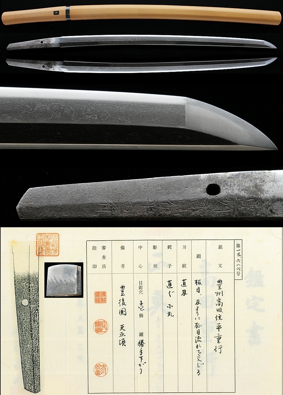 豊州高田住平重行(天正頃) 54.3㎝ 元幅2.92㎝ 黒水牛角鯉口上白鞘入 銀無垢地一重ハバキ(27.8g) 日本刀剣保存会鑑定書附 收藏