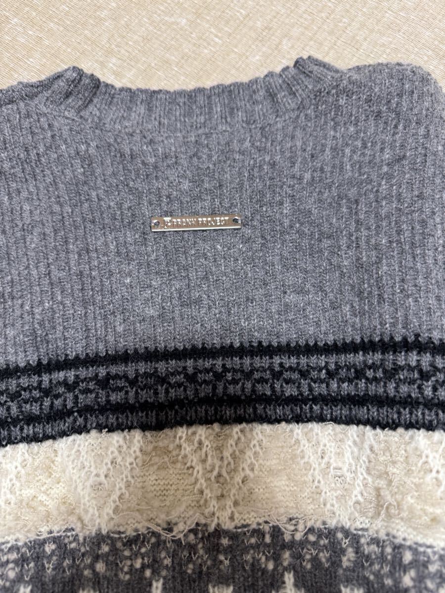 通常裏面にする面をあえて表側に使用することで、柄がぼやけて見えるようにし、ダメージがあるように見せている今年らしいニット。