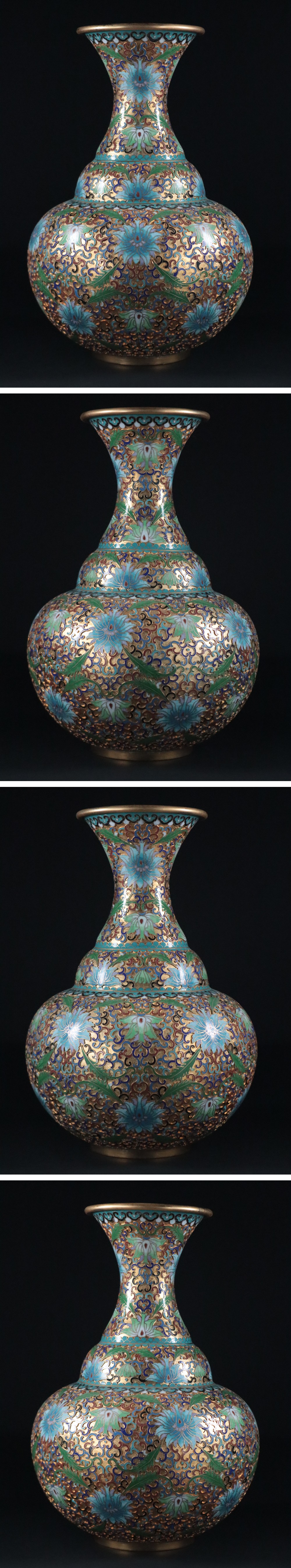 中国美術 銅胎七宝 銅製 七宝細工 琺瑯彩 纏枝蓮紋 花瓶 / 花器 花入 中國 古玩 置物 擺件 唐物 時代物 骨董品 / 高さ30,5cm 收藏