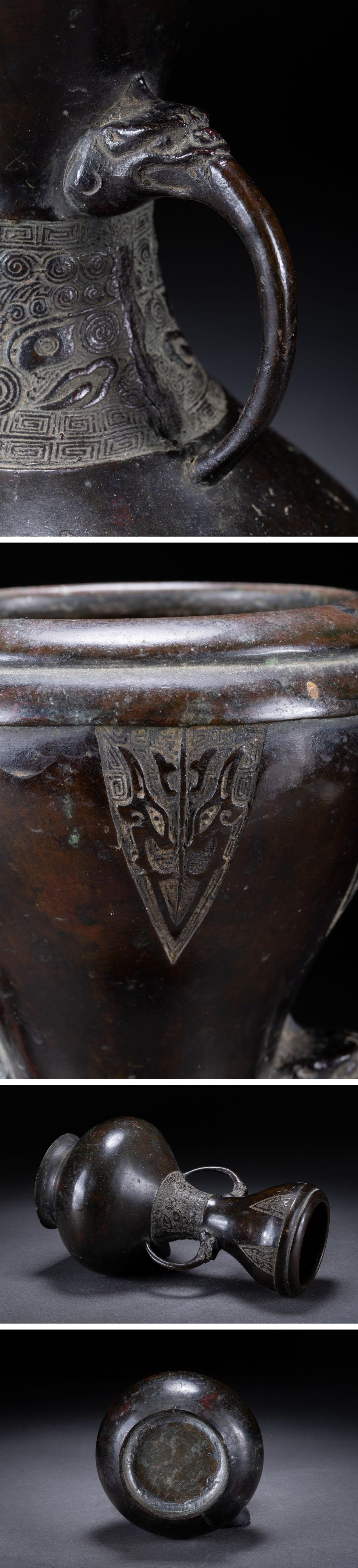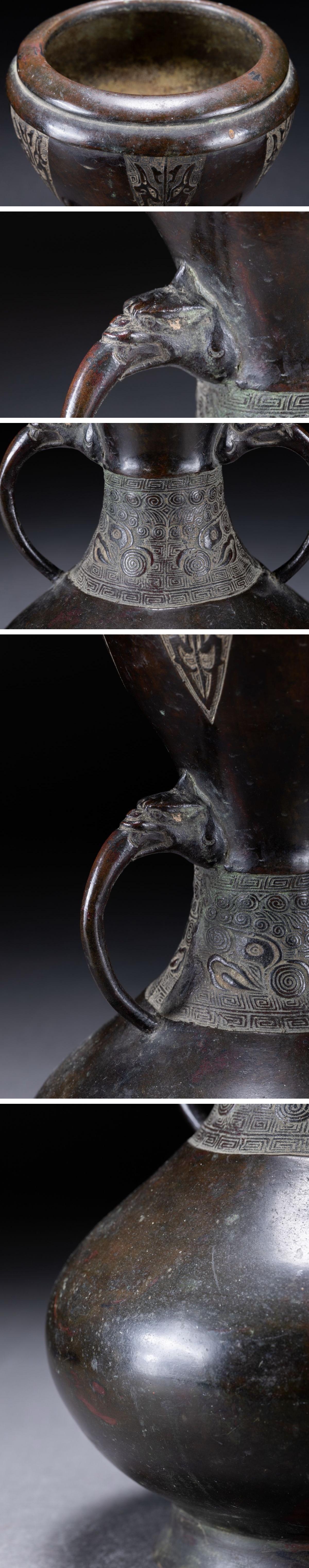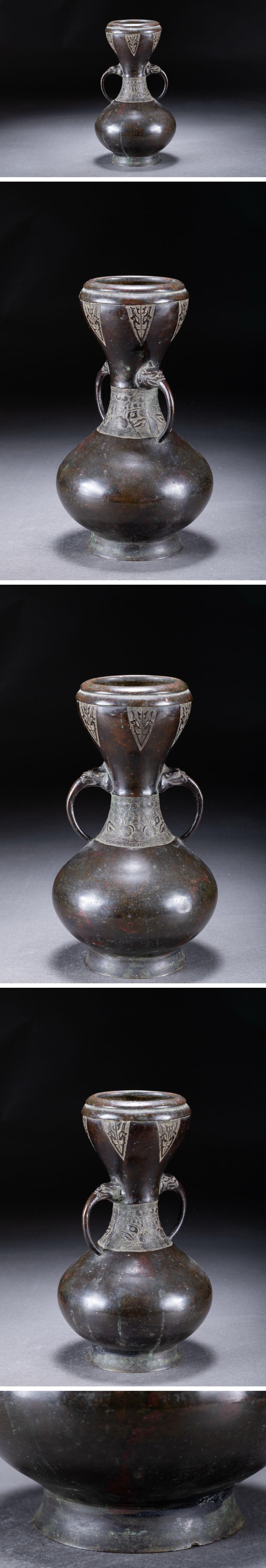 【華】時代舊藏 明治~昭和時代 宣徳銅 双龍耳花瓶 花入 時代物 古美術 骨董品A25070292-EQ