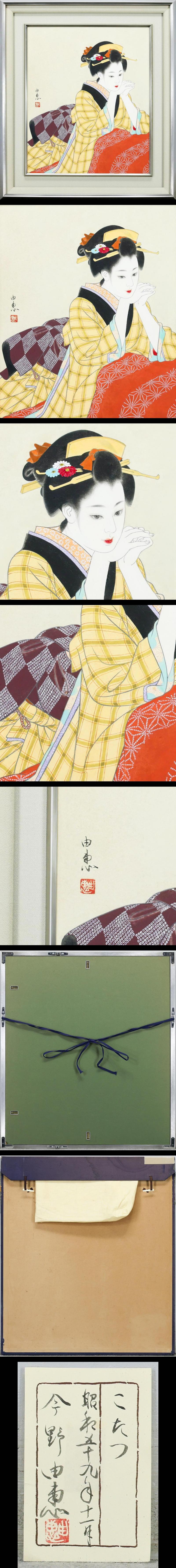 【真作】【WISH】今野由恵「こたつ」日本画 8号 1984年作 共シール ◆やわらかな微笑の和美人 〇志村立美門下 皇室献上 #25102536 收藏