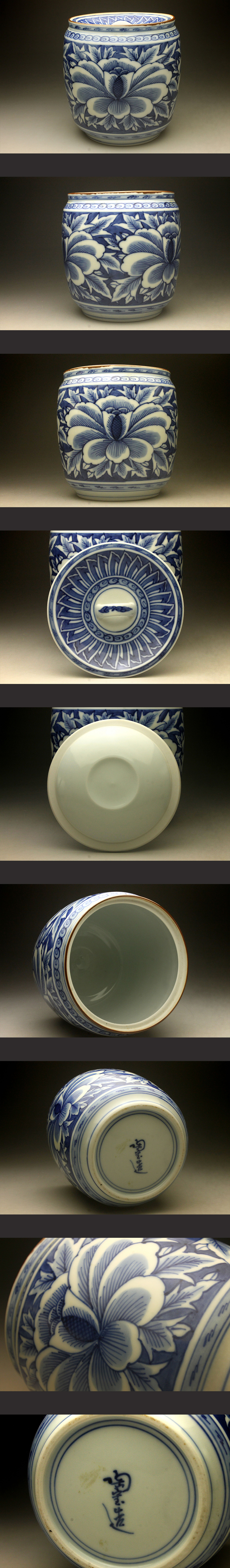 【余韻】 京焼 平安 陶宝 染付牡丹文 水指★茶道具 無傷美品 <同梱可> 收藏