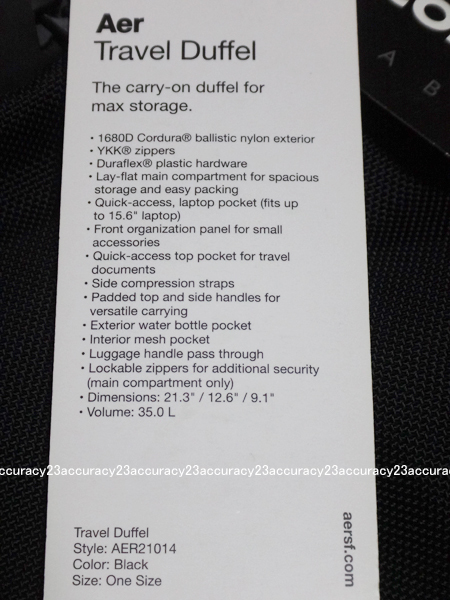 ■型番 AER21014 ■サイズ FREE / W×H×D:約54センチ×約32センチ×約20センチ ※素人の採寸の為、多少の誤差はお許し下さい。 ■カラー BLACK ■素材 1680D Cordura ballistic nylon ■状態 未使用: ※もともとの小傷やスレ等を気にされる方はご入札をお控え下さい。 ■付属品: 写真に写っているものが全てになります。