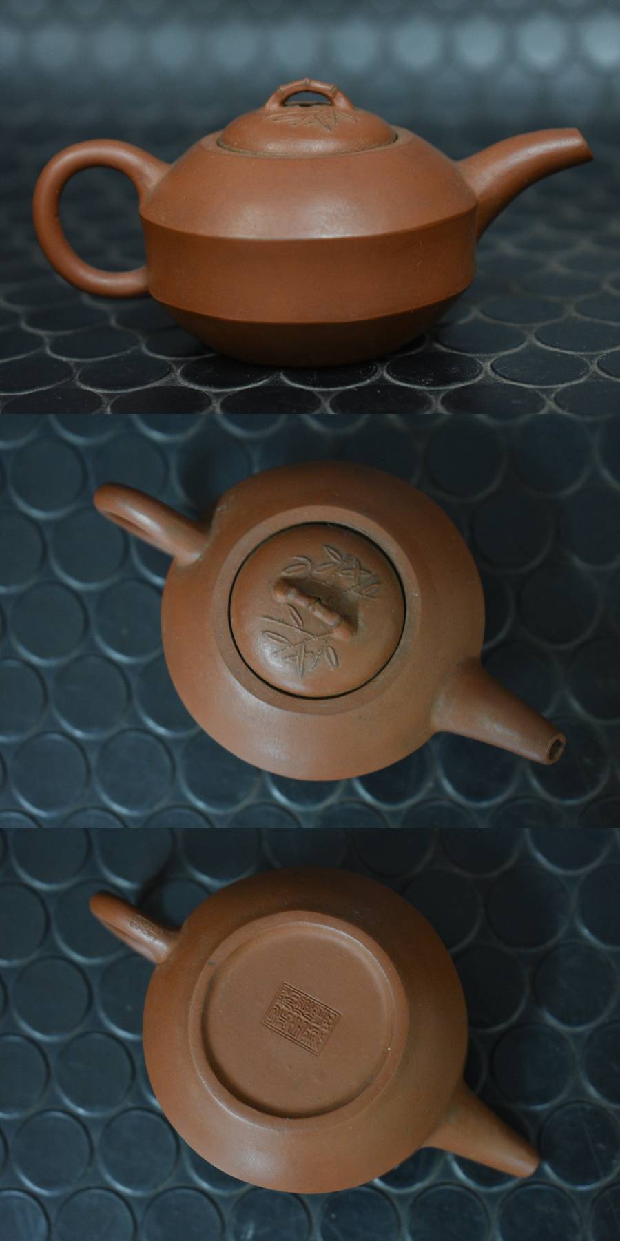 うぶ品 中国古玩 唐物 荊渓恵孟臣製 漢記 水平 竹節摘蓋 朱泥 急須 一対 小振 煎茶道具 古美術品 收藏