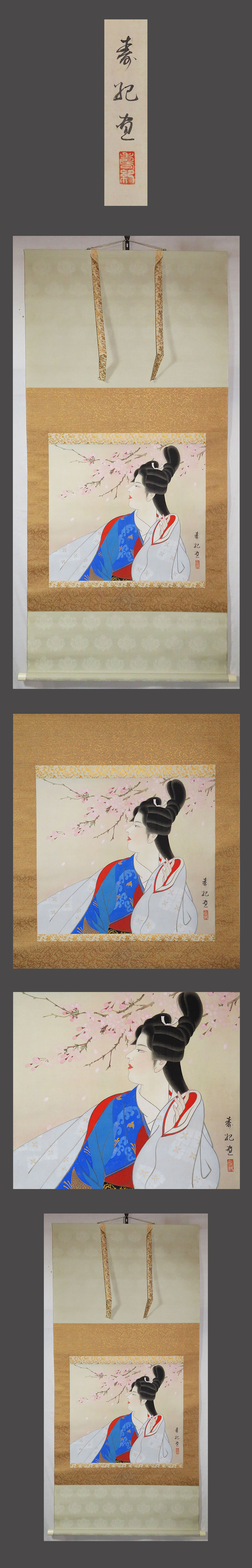 【adva】【真作】■宮下壽紀■花吹雪図■共箱■歌川派の流れを汲む美人画家■肉筆■掛軸■掛け軸■日本画■ 收藏