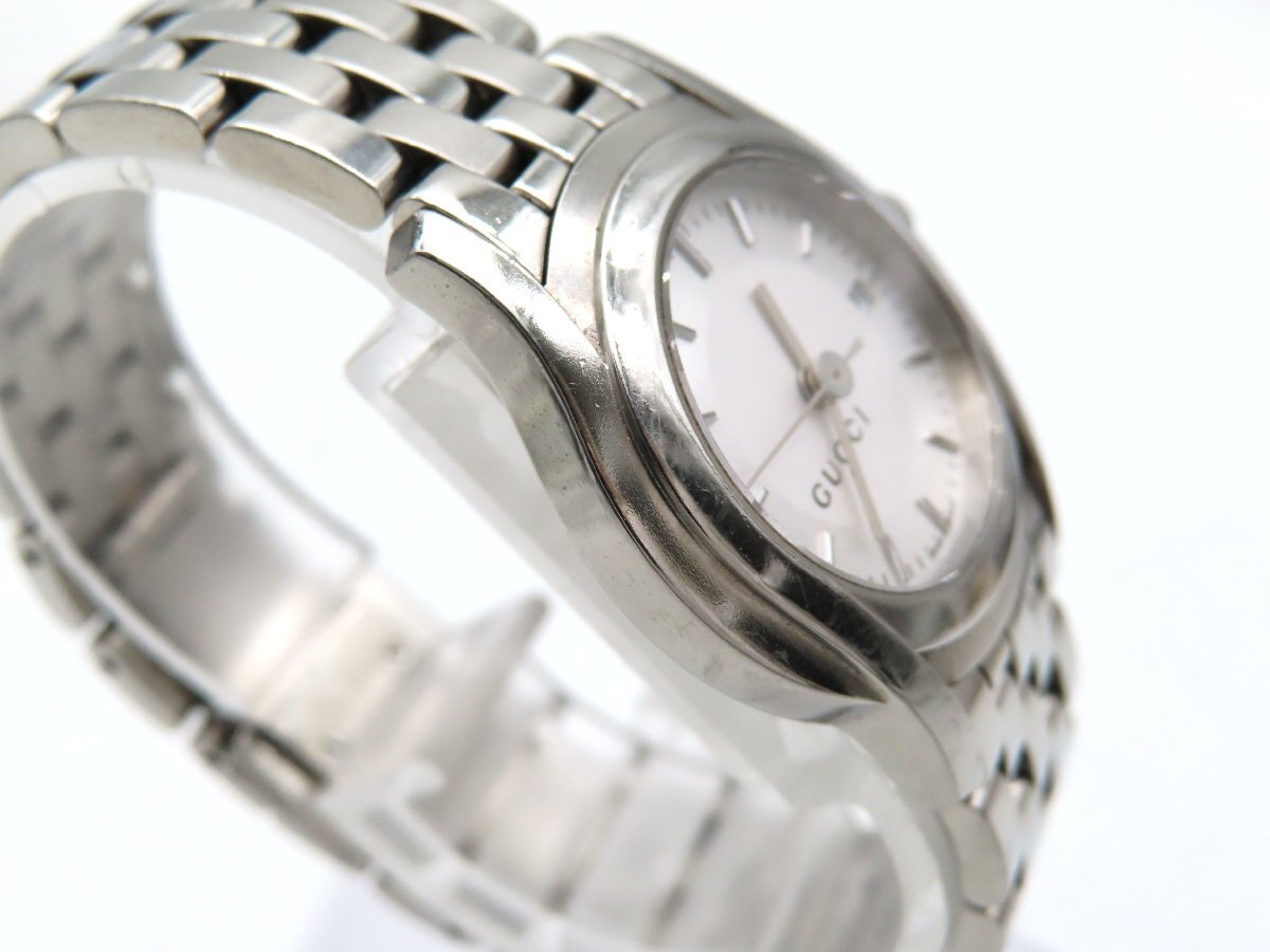 1円 グッチ 5500L SS シルバー文字盤 レディース 稼働 QZ 27202 GRG 收藏