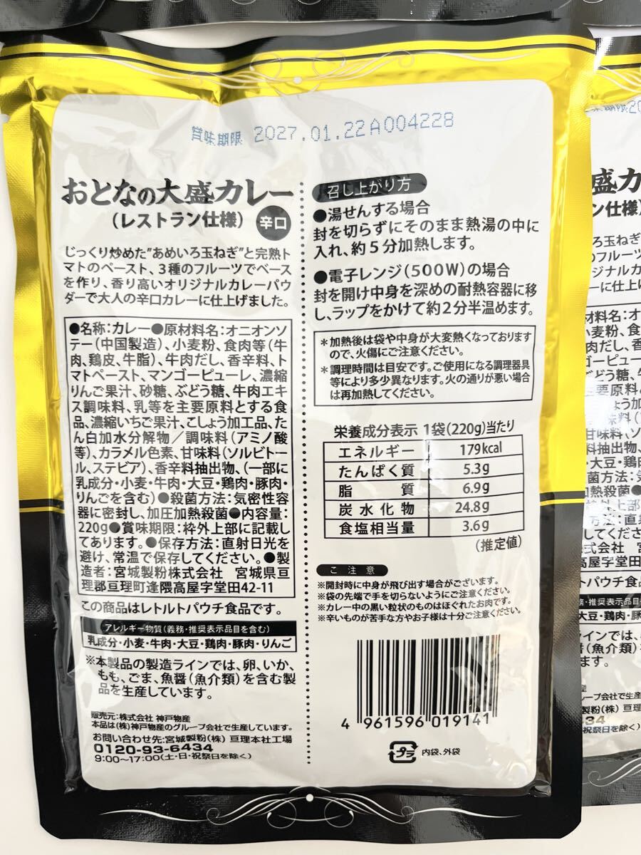 【辛口】神戸物産 レストラン仕様 おとなの大盛りカレー 220g 8個セット| 出价者 | 信用 | 价格 | 时间 |