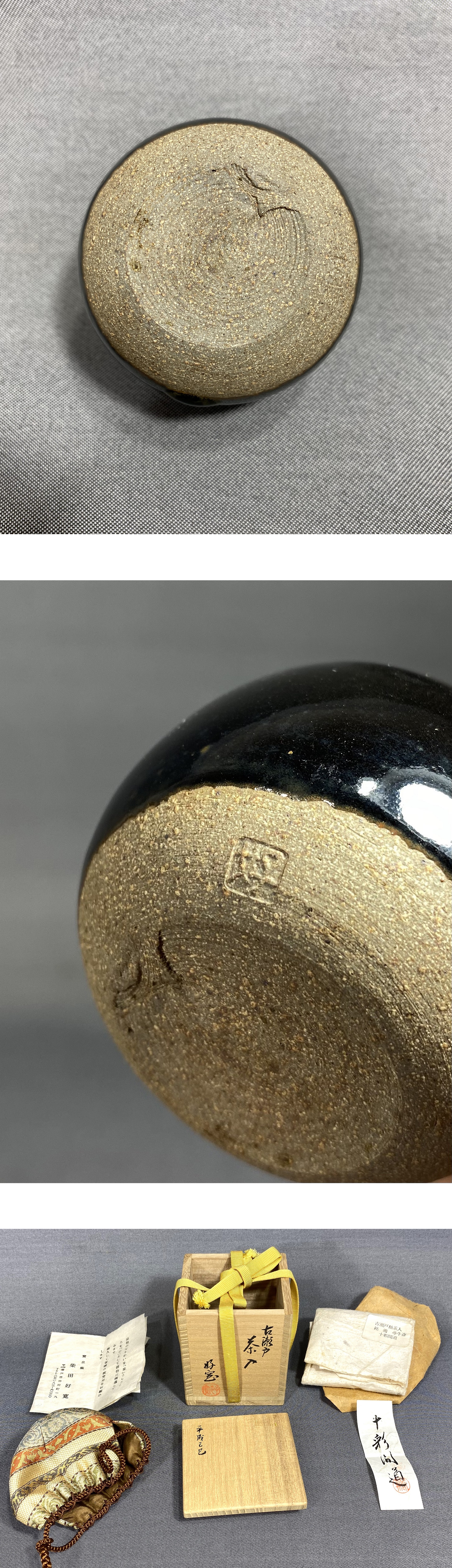 【風車】 宝泉窯 柴田好寛 作 古瀬戸釉 茶入 ▲共箱 陶歴▲表千家 久田家十二世 久田宗也(尋牛斎) 直筆 書付 銘:鶉 收藏