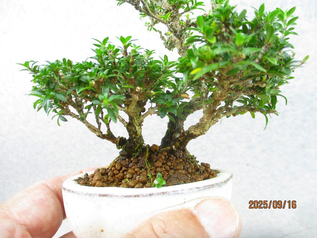[緑の市場] ミニ盆栽 姫香丁木(91280白釉丸鉢)全高:12㎝【小型送料】*同梱包対応「まとめて取引」厳守*60サイズ送料明記 同梱包ご希望は「まとめて取引」でお手続きして下さい。 *同梱包は[緑の市場]のタイトルでの出品商品に限ります。類似画像で他IDの出品にご注意下さい。* 単品(セット品は1組)発送ご希望の際は「まとめて取引」の手続きをしないでください。入札前に必ず下記の「発送方法」に記載の送料を確認してください。 の取引においてメッセージは特に必要ありません。挨拶などを省略できる取引システムですし取引ナビの通知で進行状況が判るので都度の連絡(送金や受け取りのメッセージ)は不要です。配送日時指定や連絡事項のみお知らせください。双方合理的に進めましょう。また、お急ぎの方は入札をご遠慮ください。業務時間内での対応になります(土日祝休業)。 寸法は鉢を含む全高です。(樹高ではありません。) 一緒に撮影しているスケールまたは比較物をご参照ください。 飲料缶は高さ約10㎝、直径約5㎝です。 500mlペットボトルは高さ約21㎝です。 ■画像の様子から経時変化しますので撮影日(画像記載)からの変化はご了承下さい。 *花物・実物は特にご注意下さい。 画像(撮影時)では開花品でも、お届け時は花終わりを想定して下さい。 ◎落札が無い場合は、自動再出品が継続されます。 撮影から2か月経過した場合、どんどん開始価格が下がりますが、商品の劣化も進みますので、 撮影日からの期間経過品はある程度の劣化を想定で入札にご参加下さい。 商品により90日間程度(物によりそれ以上)同じ画像を使用しますので、必ず撮影日をご確認下さい。 |