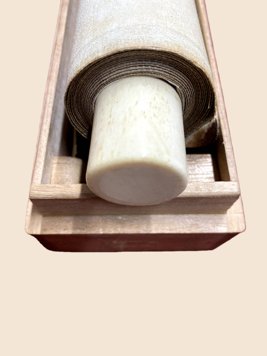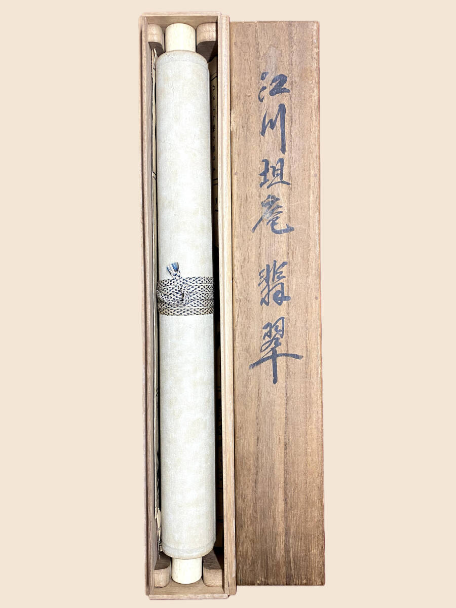 掛軸の軸先ですが、配送中の振動・気温・経年劣化等で外れてしまうことがあります。軸先の外れは、返品の対象にはなりません。大変お手数ですが、お客様ご自身での修復をお願い致します。