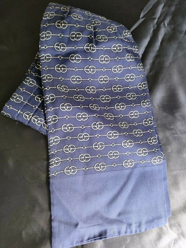 HERMES エルメス パリ アスコット ネクタイ スカーフ シルク100% ホースビット柄 ネイビー ヴィンテージ 收藏