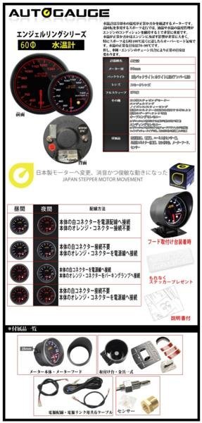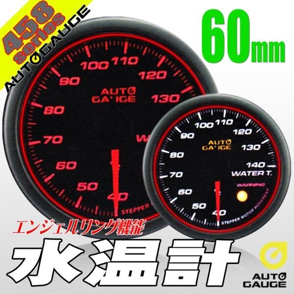 オートゲージ 水温計 60Φ 458 日本製モーター エンジェルリング スモークレンズ ワーニング オープニングセレモニー 2色LED切替 60mm 收藏