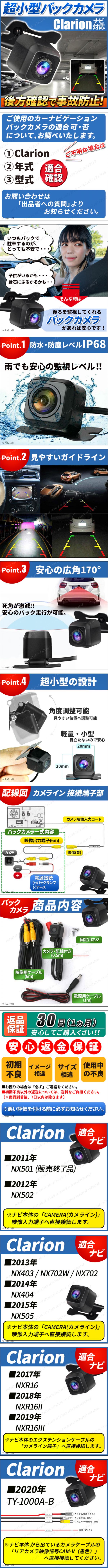 clarion バックカメラ カーナビ ナビ NX505 NX404 NX403 NX702W NX702 NX502 NX501 NXR16 TY-1000A-B 配線 電源 モニター 変換 小型カメラ