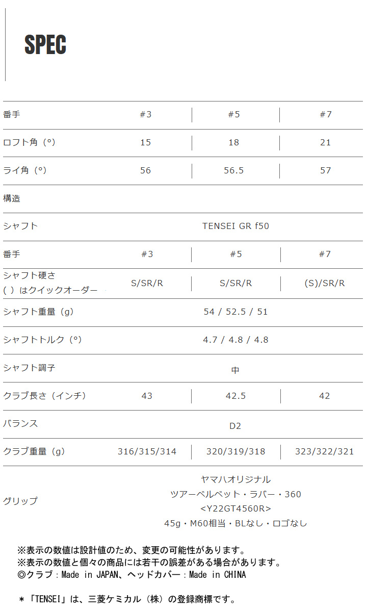 ヤマハ RMX DD フェアウェイウッド【5W(18°)/S】シャフト:TENSEI GR f50 YAMAHA リミックス FAIRWAYWOOD 日本正規品 2026 即納 收藏