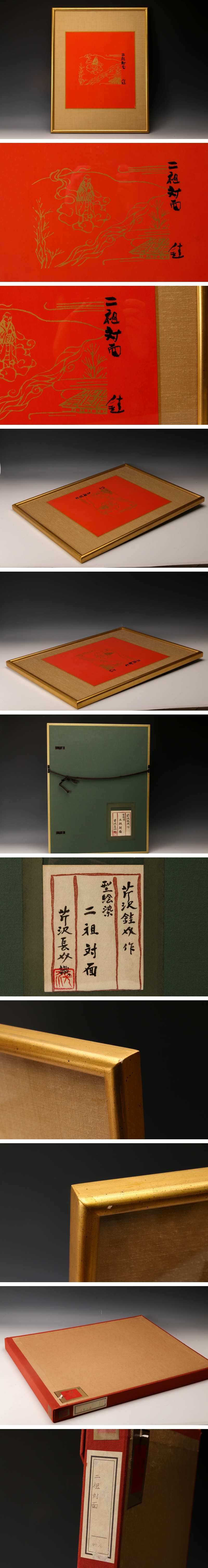 【佳香】人間国宝 芹沢銈介 『二祖対面』和紙に型絵染 芹沢長介識 額装 タトウ箱 本物保証 收藏