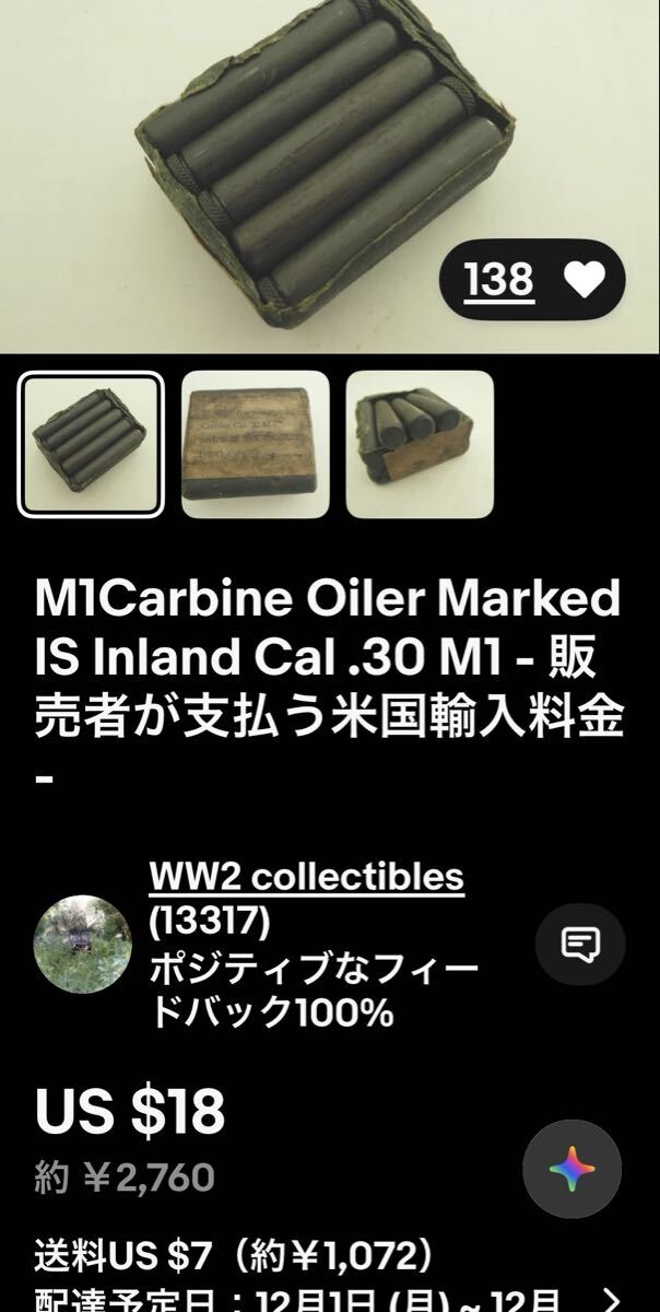 ※ これらのM1カービン オイラーの平均的な価格は、刻印により大きく異なります。