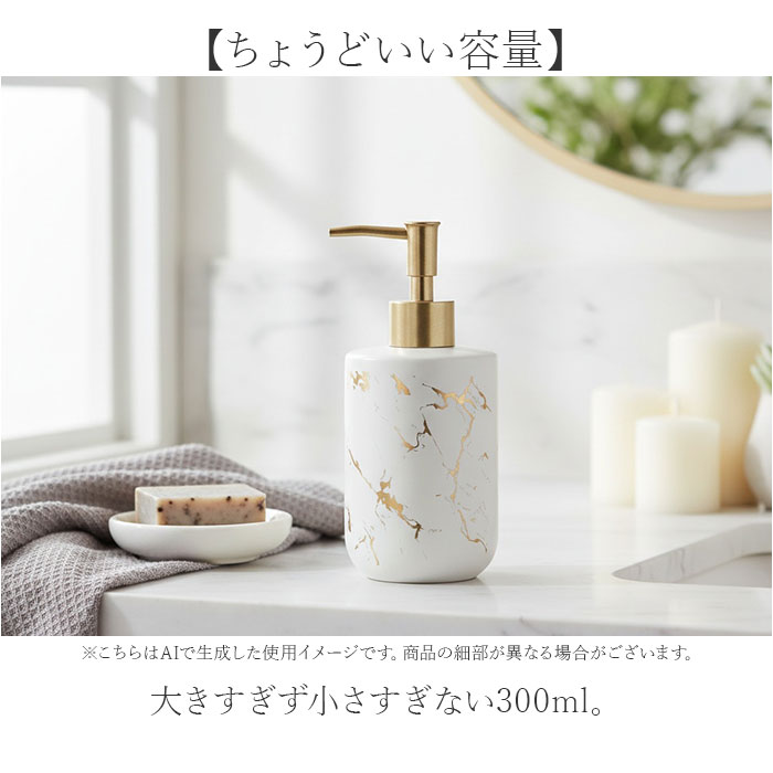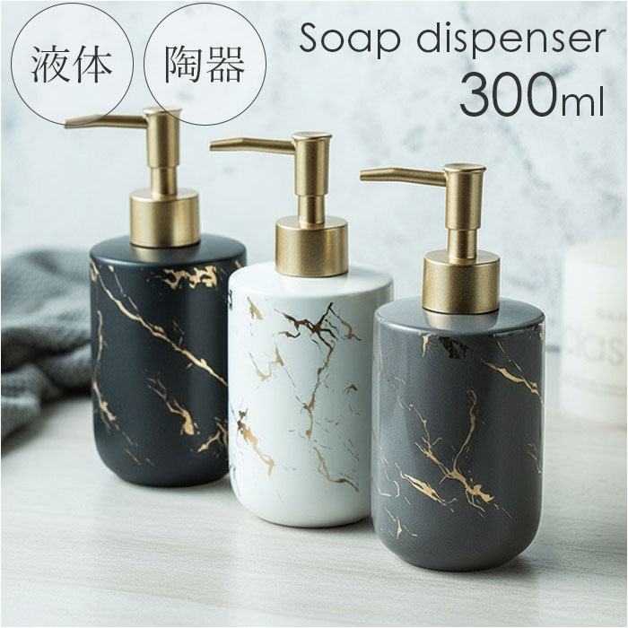 | 商品説明 | ・・【上質さが光る】 ・陶器の質感が生み出す高級感あふれる液体タイプのディスペンサー。 ・【清潔さ長続きのノズル】 ・液だれしにくい長めのノズルで、本体が汚れにくい設計◎ ・【ちょうどいい容量】 ・大きすぎず小さすぎない300ml。 ・【陶器ならではの重厚感】 ・安定感抜群で倒れにくく、安心して使える♪ ・【3色から選べるカラー展開】 ・インテリアに合わせて選べる、洗面台や台所を彩る豊富なバリエーション! |