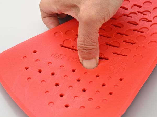 表にハードプロテクターの素材、裏はソフトプロテクターに使用される衝撃吸収素材を組み合わせ、高い安全性を誇る新発想プロテクター。