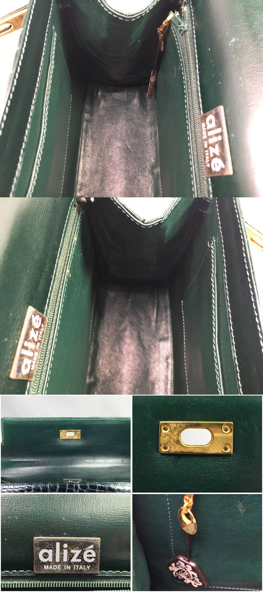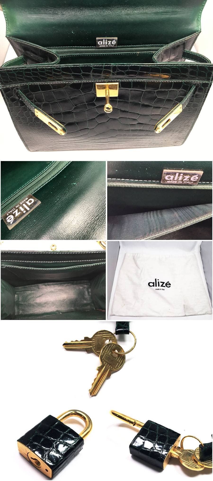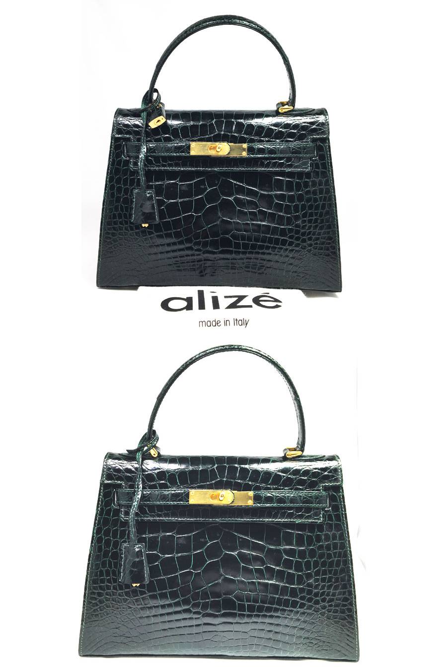 alize アリゼ 本革 クロコダイル レザー バーキン調 ハンドバッグ グリーン系 カデナ クロシェット イタリア製 保存袋付 收藏