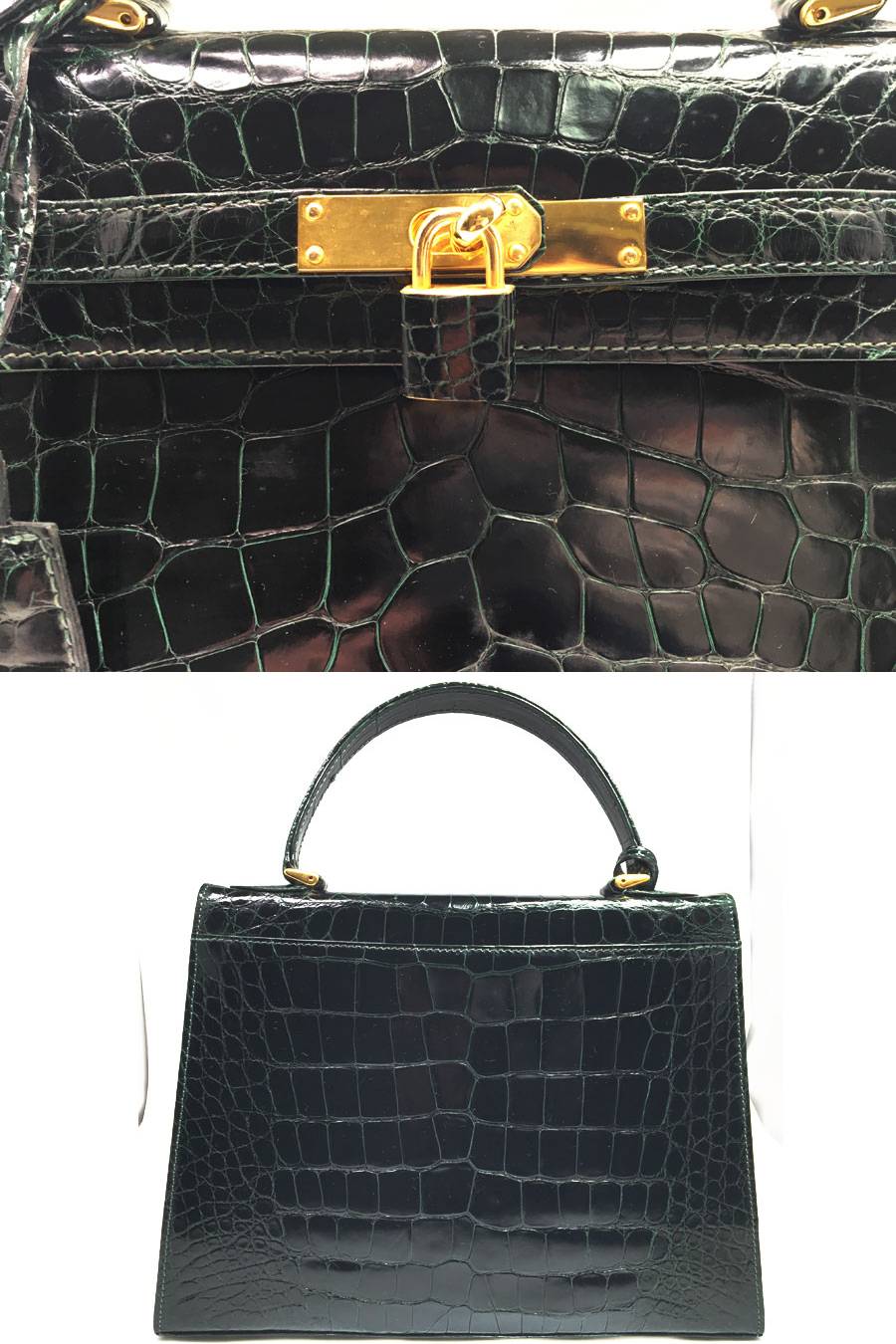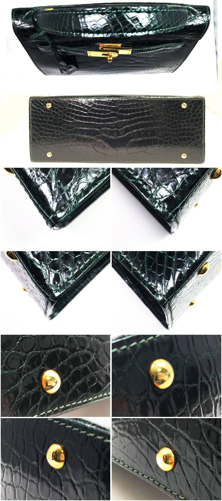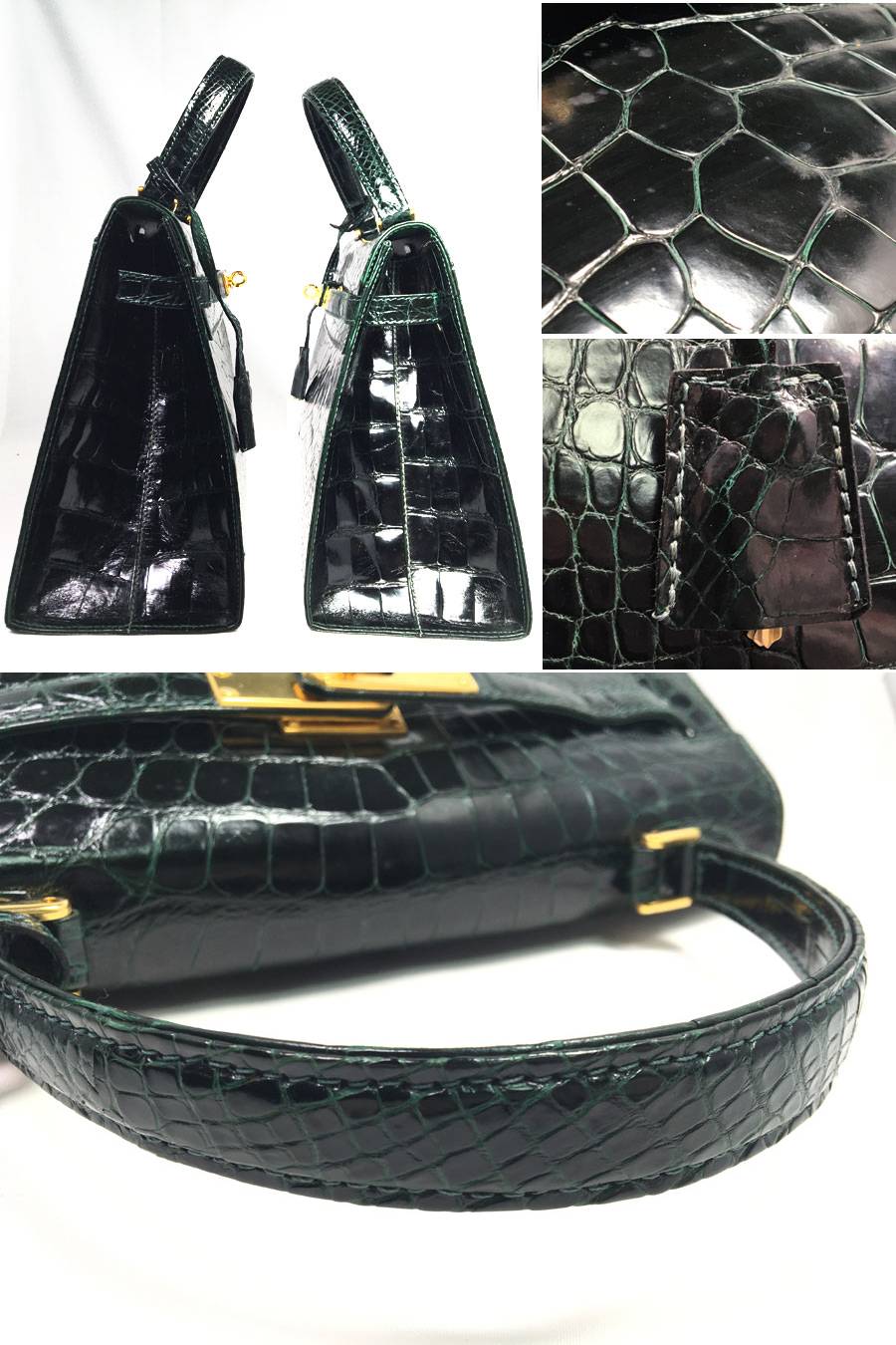 alize アリゼ 本革 クロコダイル レザー バーキン調 ハンドバッグ グリーン系 カデナ クロシェット イタリア製 保存袋付 收藏