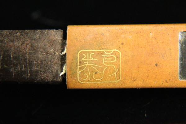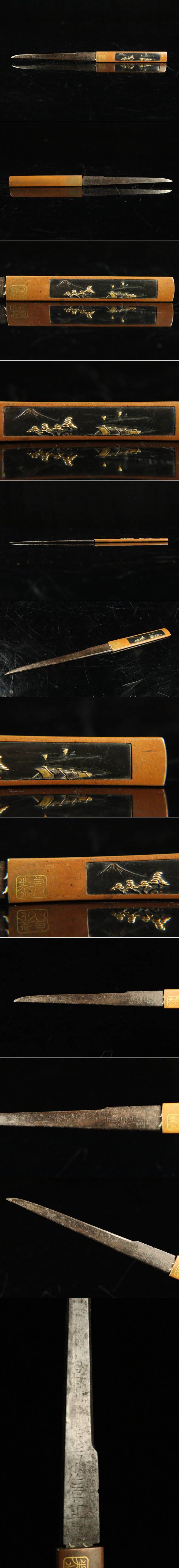 【ASAHI】時代武具 小柄 素銅地金象嵌盛り上げ花鳥図 小刀 在銘 全長21.5cm 小道具[71139wp] 收藏