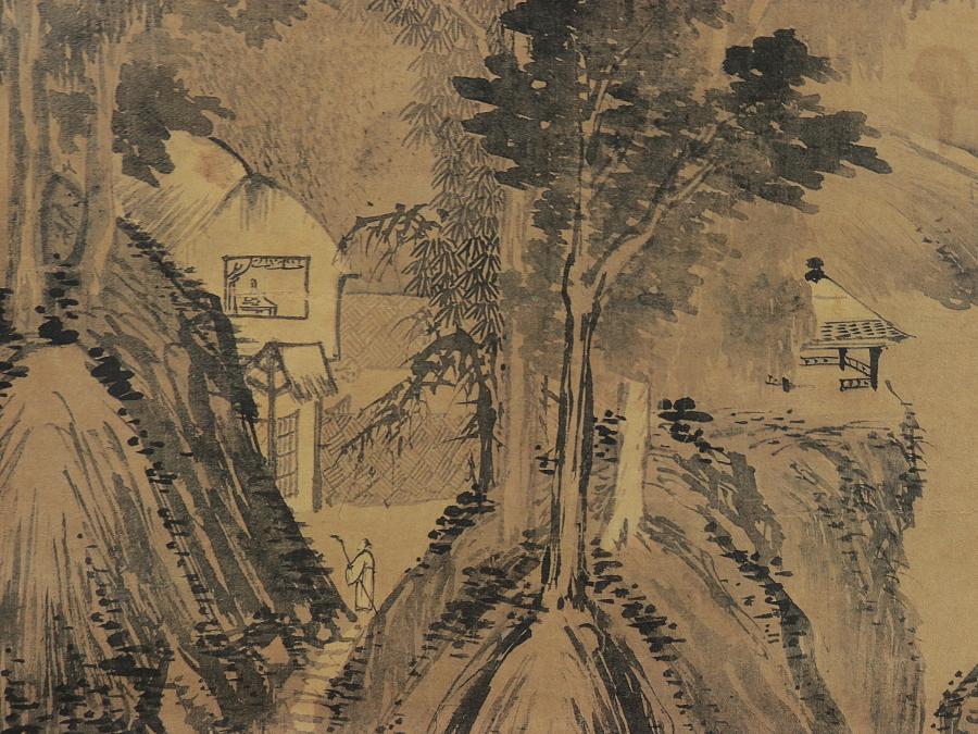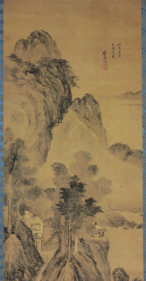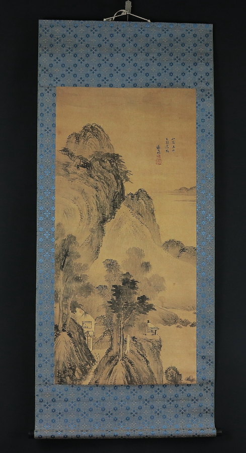 11812■【真作】鄭?(ていぜん) 謙斎 山水画 工芸印刷 朝鮮 李朝 韓国 チョン・ソン 掛軸 收藏
