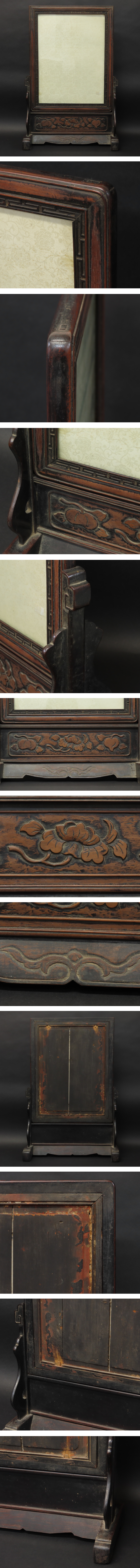 【月】【骨董品 茶道具59】中国 唐物 古紫檀 時代唐木 小衝立 円形絵画花果実図丸面付 高さ60.8cm / 古玩 花梨 收藏