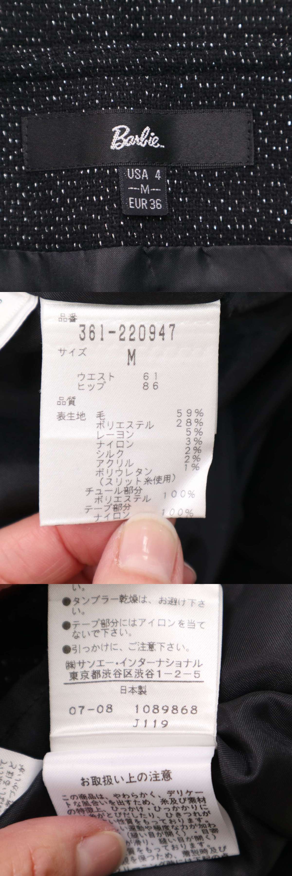 Barbie バービー 秋冬 ラメ★ ミニスカート タイトスカート ボトムス Sz.M レディース 黒 收藏