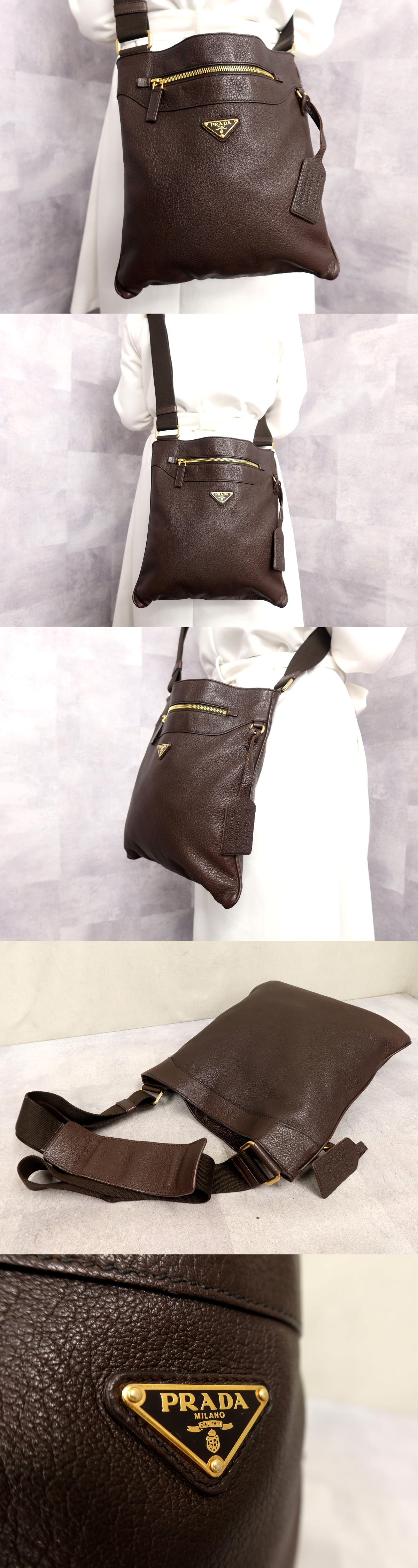 ●超美品●PRADA プラダ●メンズ●三角ロゴプレート●カーフ レザー 本革●ショルダー バッグ●ブラウン●G金具●イタリア製●B5●Js62971 收藏
