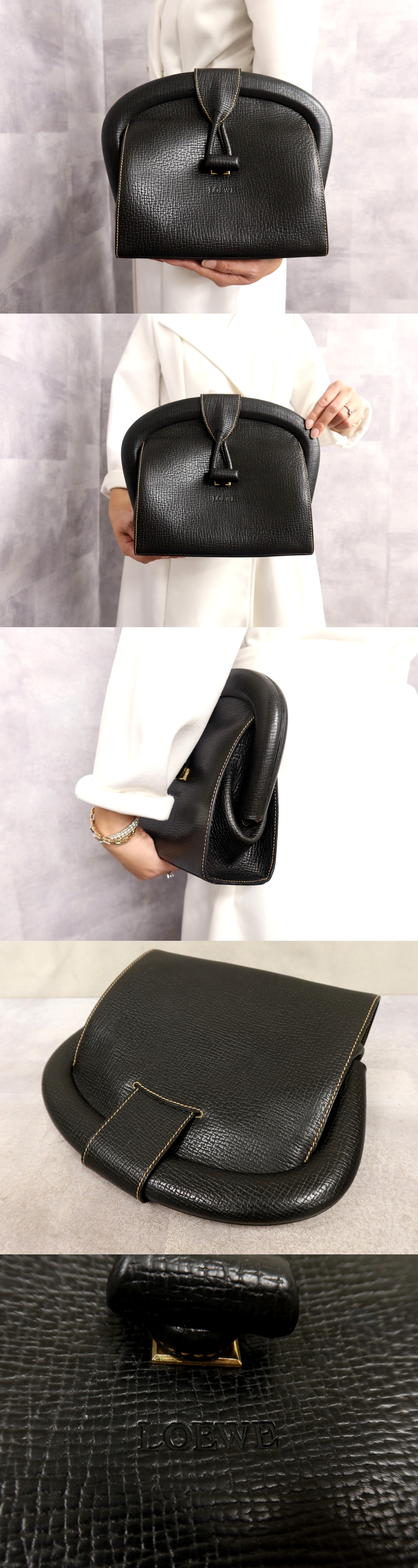 ●超美品●LOEWE ロエベ●ロゴ型押し●カーフ レザー 本革●セカンド クラッチ バッグ●黒●ゴールド金具●収納 かばん●Js62992 收藏