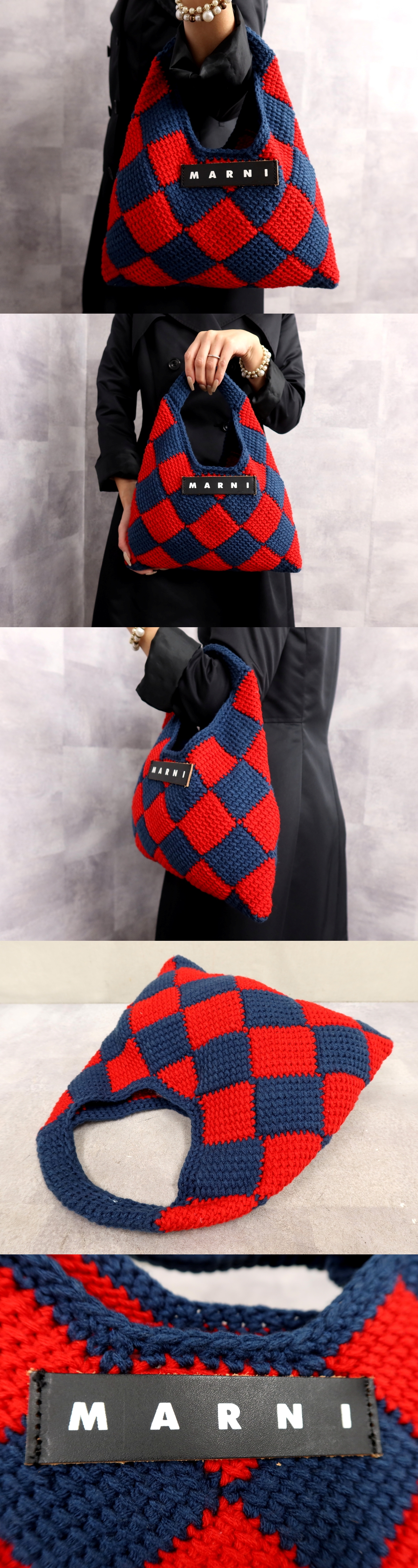 ●超美品●MARNI マルニ●MARNI MARKET DIAMOND●テックウール●ハンド バッグ●ブルー 赤●腕掛け●かばん●Js63480 收藏