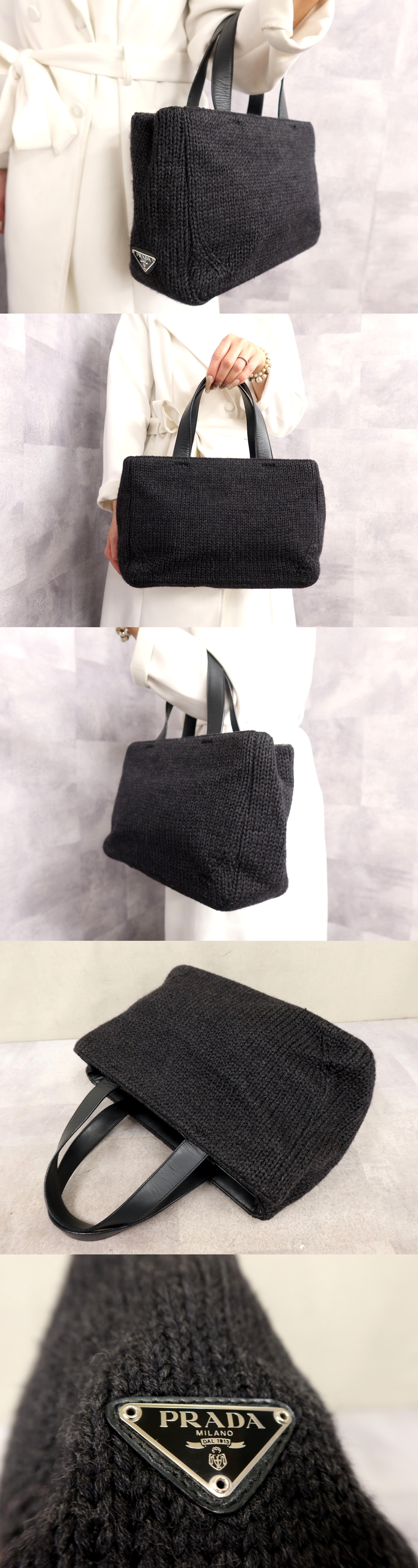 ●超美品●PRADA プラダ●三角ロゴプレート●ニット カーフ レザー 本革●トート ハンド バッグ●ダークグレー●イタリア製●B5●Js63407 收藏