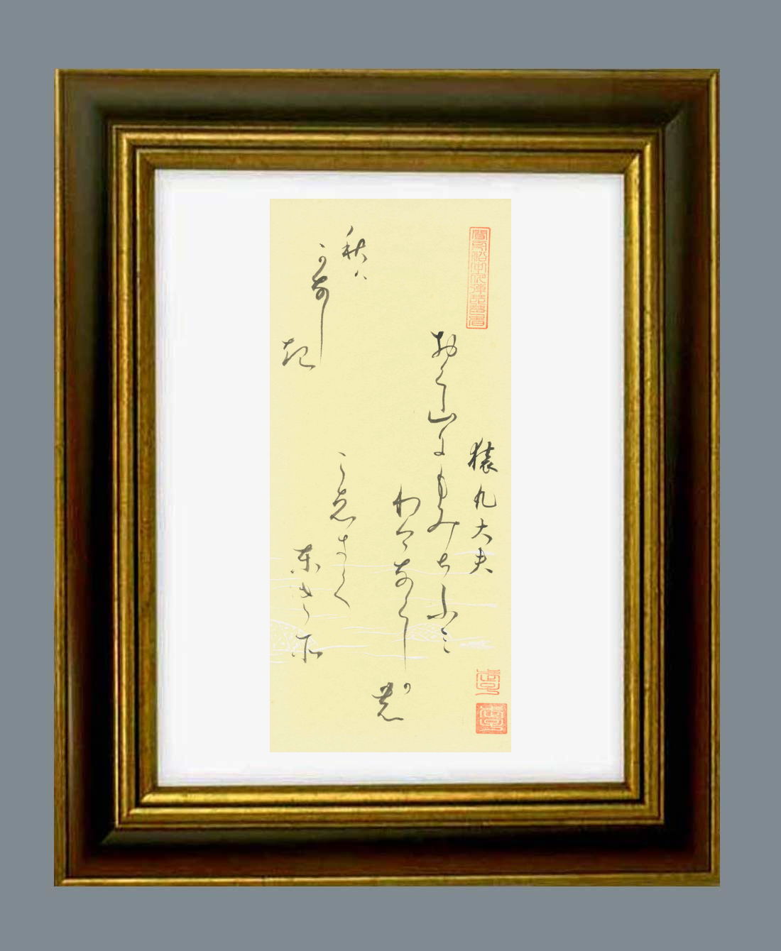 「百人一首」原本の大きさ タテ27.0センチ ヨコ11.8センチ。額縁の大きさは、タテ40.0センチ ヨコ30.0センチ。額縁は新品です。 |