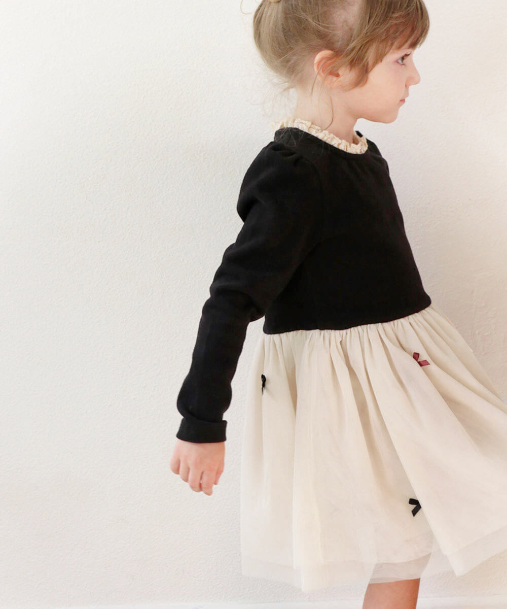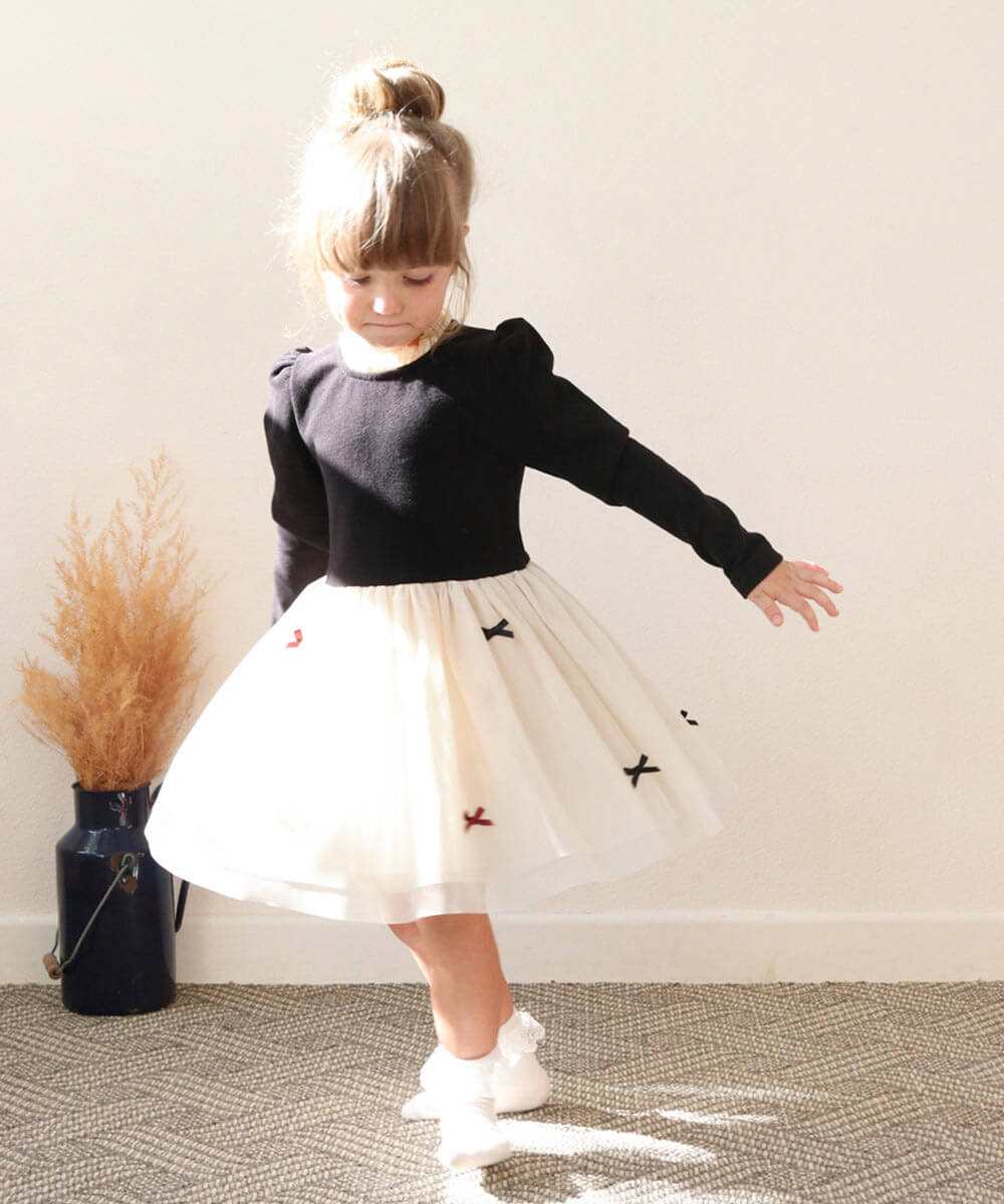 | 商品説明 | ・・英国ガーデンに佇むお嬢様みたい!黒トップスと上品なクリーミーなチュールスカートのコラボが、女の子のプリンセス願望を叶えます。 ・シンプルな黒のトップスの肩口にはきちんと感のあるパフ仕様。 ・襟を囲うナチュラルなテイストのトーションレースがお顔周りを華やかにしてくれるポイントです♪背中側のティアドロップのスリットは、大人っぽさが際立つポイントです。 ・何より可愛いのが、裏地の上に4枚を重ねたボリュームを出したチュールスカートの豪華のボリューム感。 ・4枚重ねのチュールに 裏地もしっかりついているので安心です。 ・スカートのリボンは フロントのみならず後ろ部にもすべてつけており、後ろ姿もとってもかわいく演出する上に、ただのモノトーンワンピースの枠にはおさまらない可愛さを演出してくれます♪女の子らしいシルエットをキープ!近くで見ても遠くで見ても完璧に可愛い女の子になれちゃう 子供服Roraジュリエドレスワンピースは、ちょっとした食事会などのお出かけにはもちろん、結婚式や発表会などフォーマルなシーンにも、落ち着いた華やかさで上品な雰囲気が満喫できる一品です。 ・ ・■洗濯方法 洗濯機洗い可(おしゃれ着コース、ネット使用) 綺麗に長く着用していただくために、ネットに入れてお洗濯されることをお勧めします ・■モデル:身長106cm/体重15.5kg/100cm着用 |