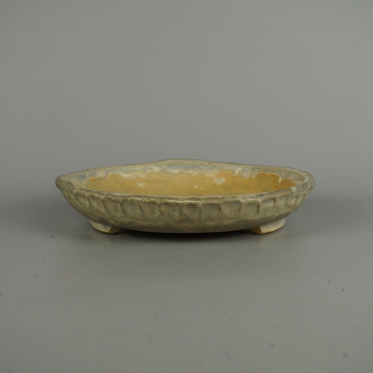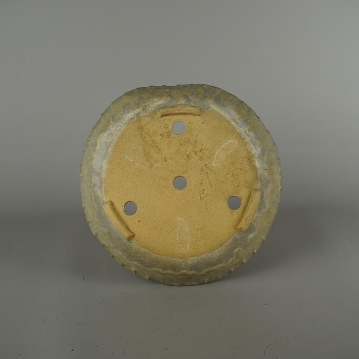 【中古】盆栽鉢 常滑 秀峰 中型 長辺 約 21cm 丸鉢 釉薬 和鉢 現品 中古鉢 收藏