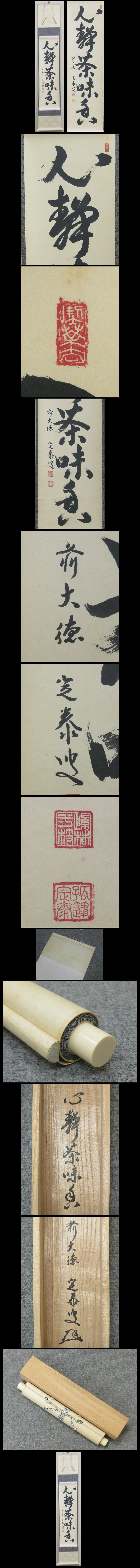 【心庵】掛軸 小堀定泰 前大徳 紙本 一行書「心静茶味香」/肉筆 共箱 真作 B783 收藏