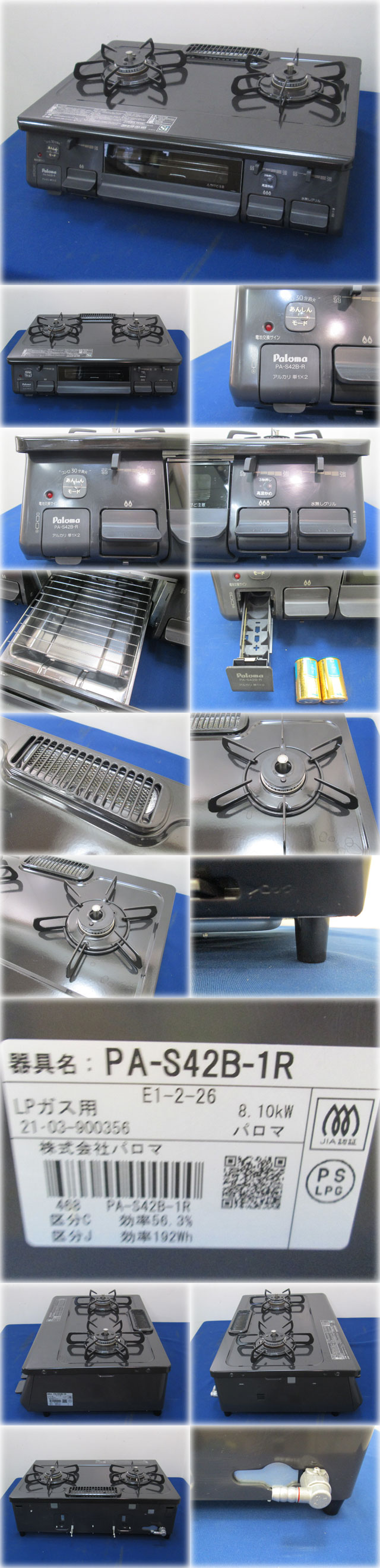 パロマ 水なし片面焼グリル付ガステーブル PA-S42B-1R を出品いたします。 ■特徴■ 清掃性もアップした「シールドトップ」 煮こぼれなどが器具内に侵入しにくいシールドトップ。 汁受け皿がないから、拭き掃除がラクラクです。 すっきりクリーンゴトク 洗いやすさや拭きやすさにもこだわり、 ゴトクはより丸くより角をなくしたやさしいフォルムに。 はめやすく、ガタつきにくい3点止めです。 フレームトラップ パロマ独自の安全装置で、 万がーグリル内の魚などに引火した場合でも、 排気口から炎が出ることを抑制し、火炎を未然に防ぎます。 特許番号 第4203521号 Siセンサー すべてのバーナーに搭載した安心・安全機能! すべてのバーナーに 「調理油過熱防止装置」「消し忘れ消火機能」などを搭載! 最新の配慮から数々の安全機能をカタチにしました。 ■仕様■
