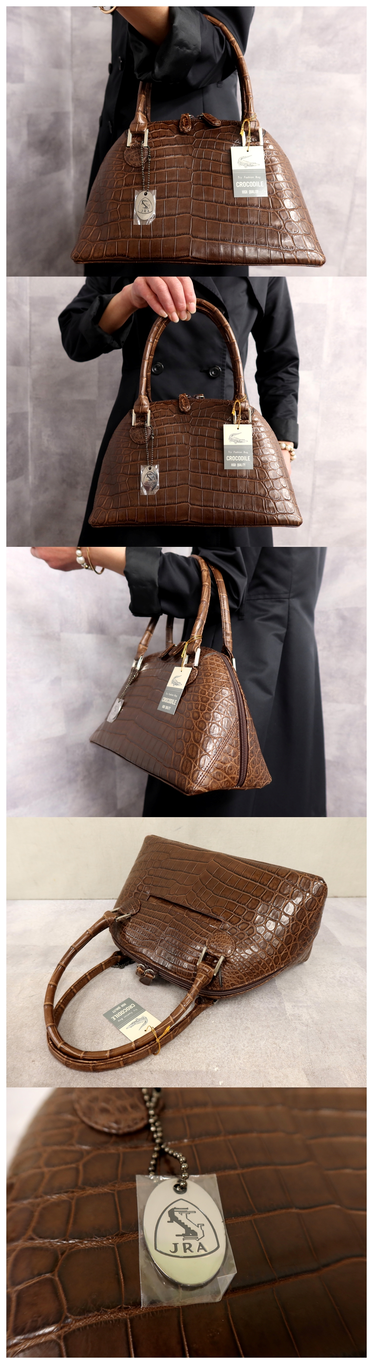 ●超美品●JRA 認定●マット クロコダイル 本 ワニ 革●ハンド バッグ●ブラウン●シルバー金具●腕掛け●かばん●Js64238 收藏