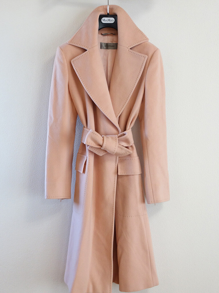 SPORTMAX■スポーツマックスカシミアウールベルテッドラップコート■36ピンク 收藏