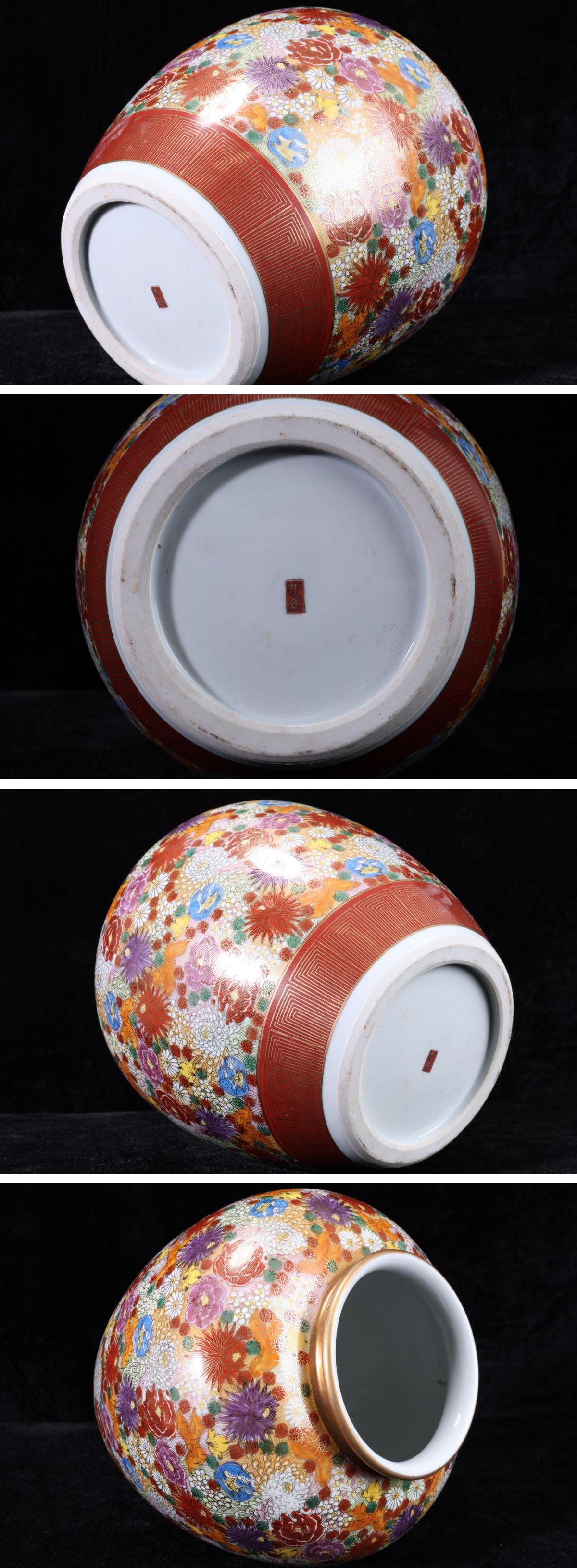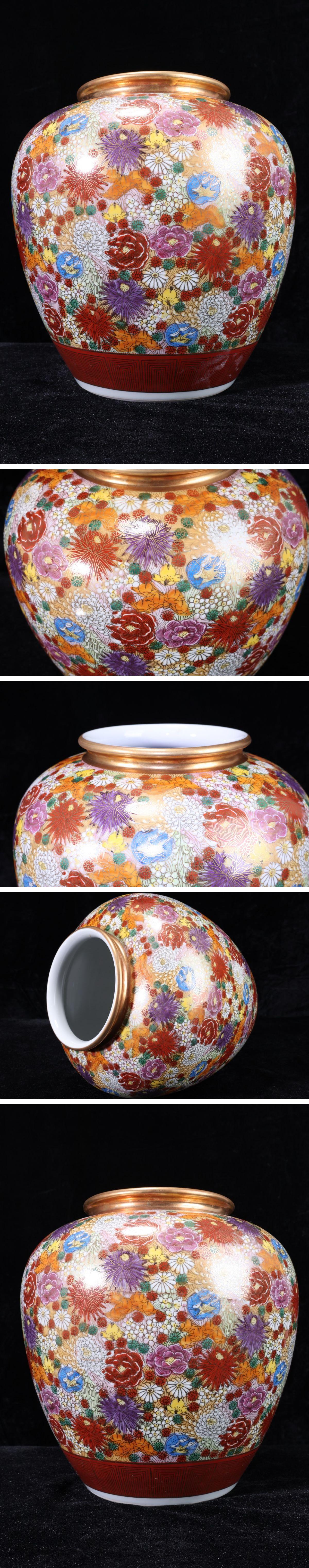 【珍品堂】1円から 九谷焼 百花繚乱 金彩色絵 在銘有 花瓶 飾り壺 時代物 古美術 骨董品 高約25.5cm AC50C-J 收藏