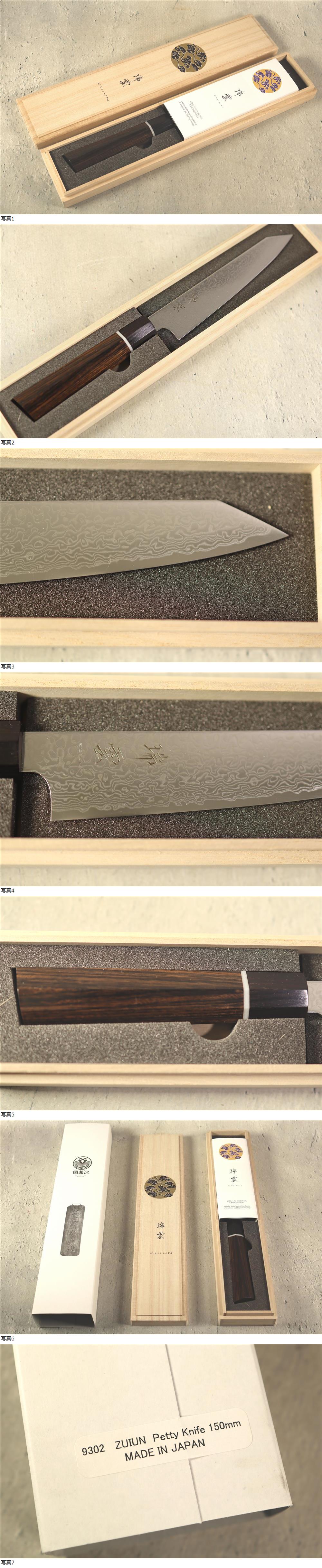 未使用 関兼次 瑞雲 ペティナイフ 包丁 150mm 切付包丁 ダマスカス鋼 桐箱 食器 調理器具 收藏