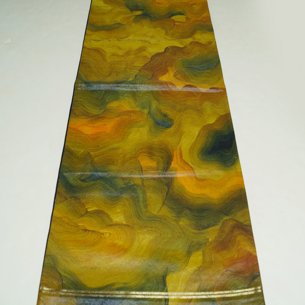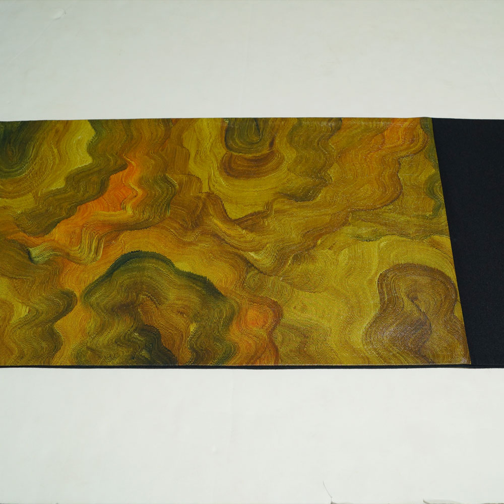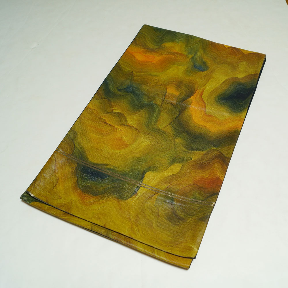 | 商品 説明 | 芥子・紺色系ぼかしの墨流しのような抽象的な模様が施された袋帯です。 |