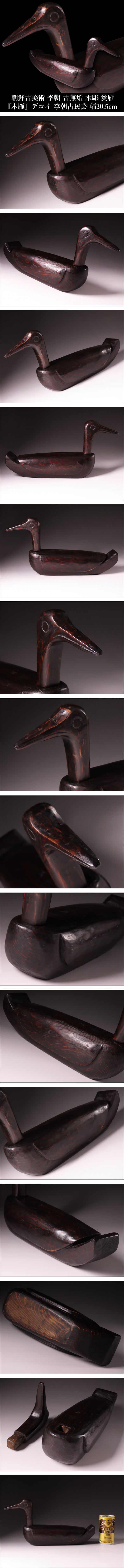 【ONE'S】朝鮮古美術 李朝 古無垢 木彫 奠雁 『木雁』 デコイ 李朝古民芸 幅30.5cm 置物 時代古玩 古美術品 | |||