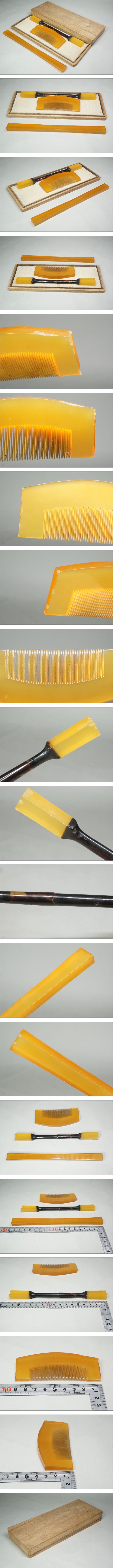 | 商品説明 | 鼈甲製の櫛笄のセットです。状態は多少の虫食い変色がありますので、お写真をご覧ください。笄約19㎝、約17㎝、櫛約9㎝。 |