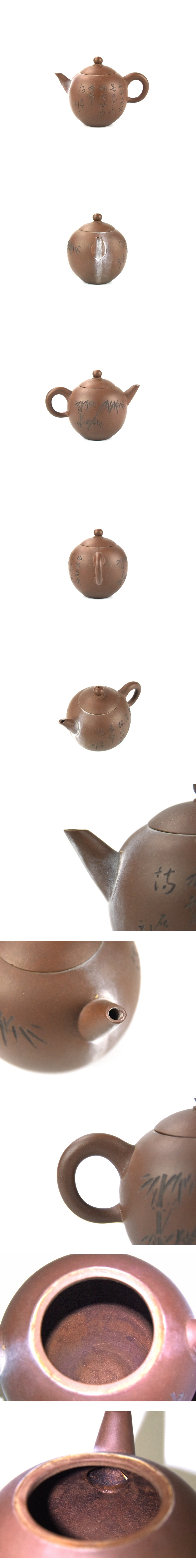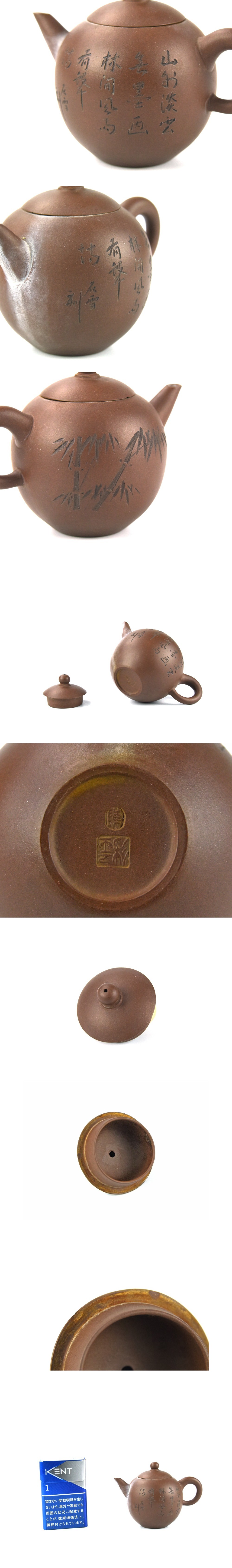 【北】唐物 陳 彩雲 石雪刻 朱泥 紫泥 急須 紫砂 幅11.3㎝ / 煎茶 茶道具 收藏